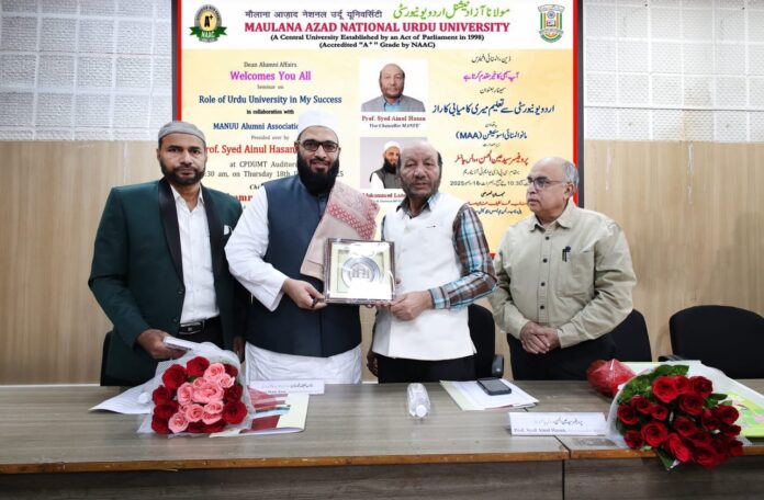 The program began with a welcome address by Advocate Aijaz Ali Qureshi, while Dr. Mohammed Mustafa Sarvari, Associate Professor, conducted the proceedings. Alumni shared personal reflections, describing their education at MANUU as a key contributor to their professional success. The event concluded with a vote of thanks by Prof. Syed Najmul Hasan, Coordinator, Alumni Affairs.